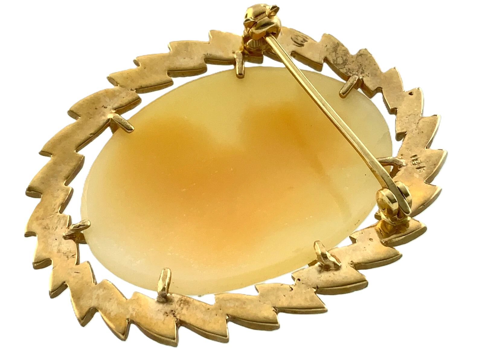 Antique Cameo Brooch 10K Yellow Gold Leaf Border Beautiful Angels AU103