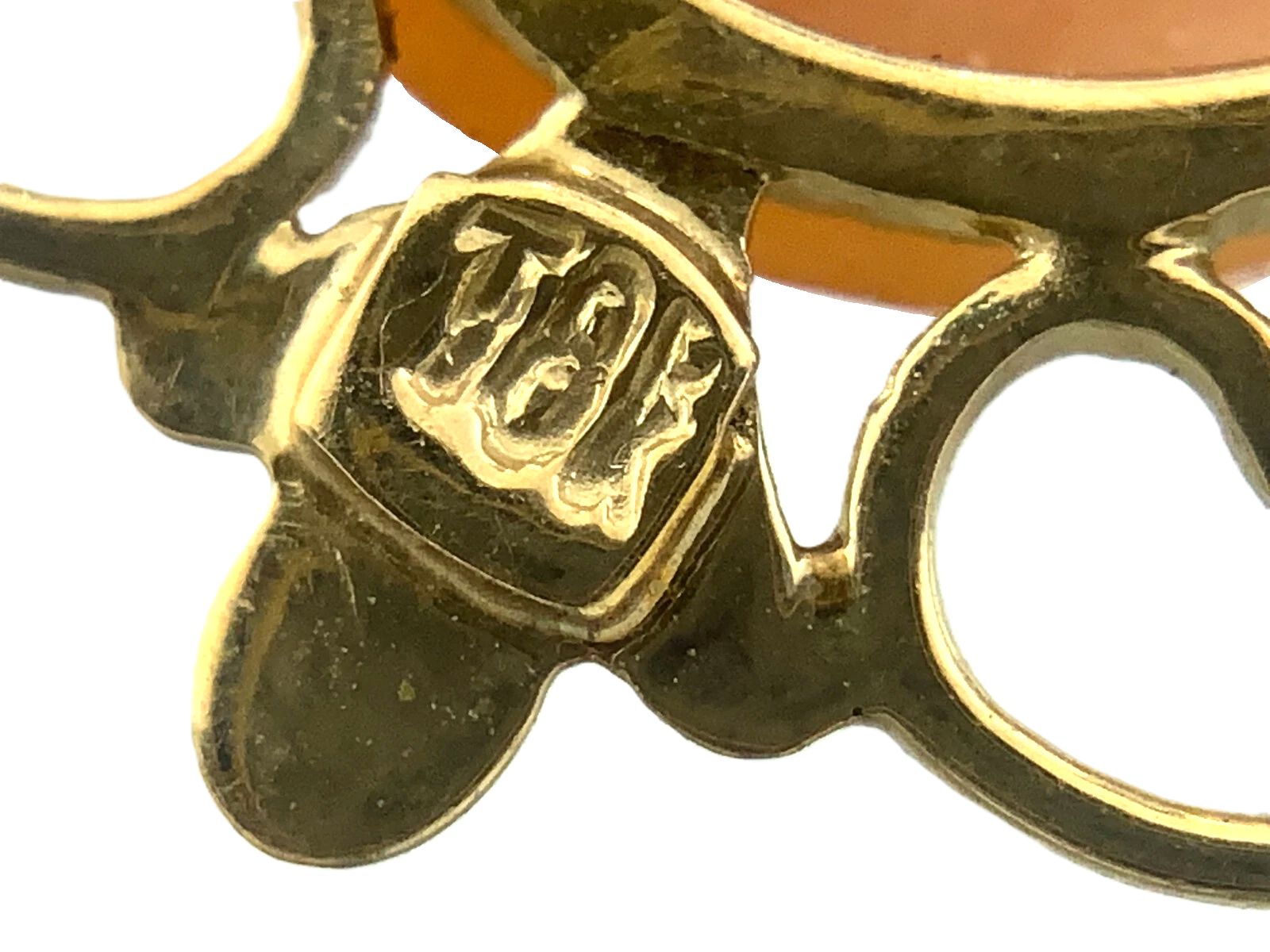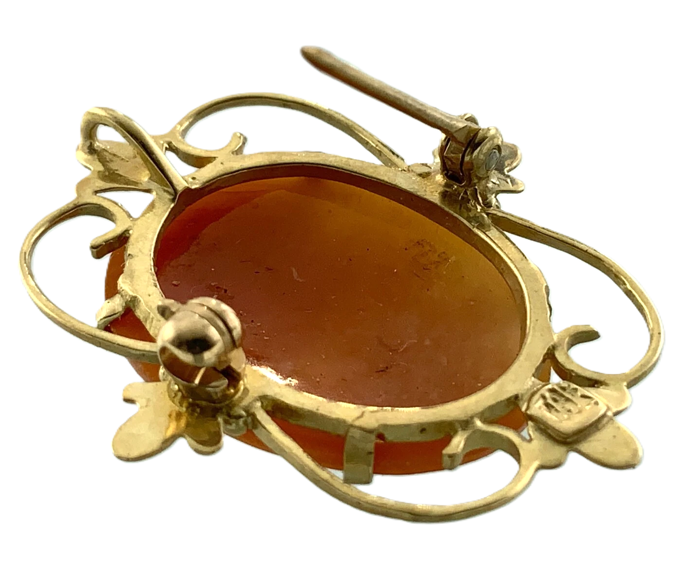 Antique Cameo Brooch 10K Yellow Gold Pendant Carved Woman Portrait AU104