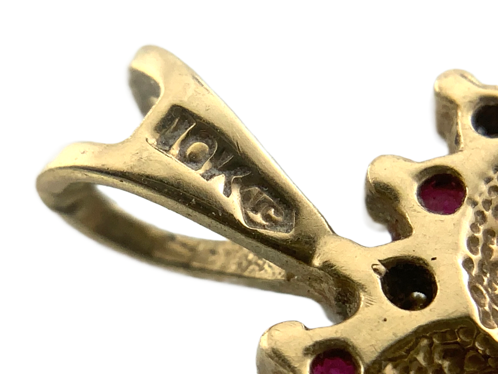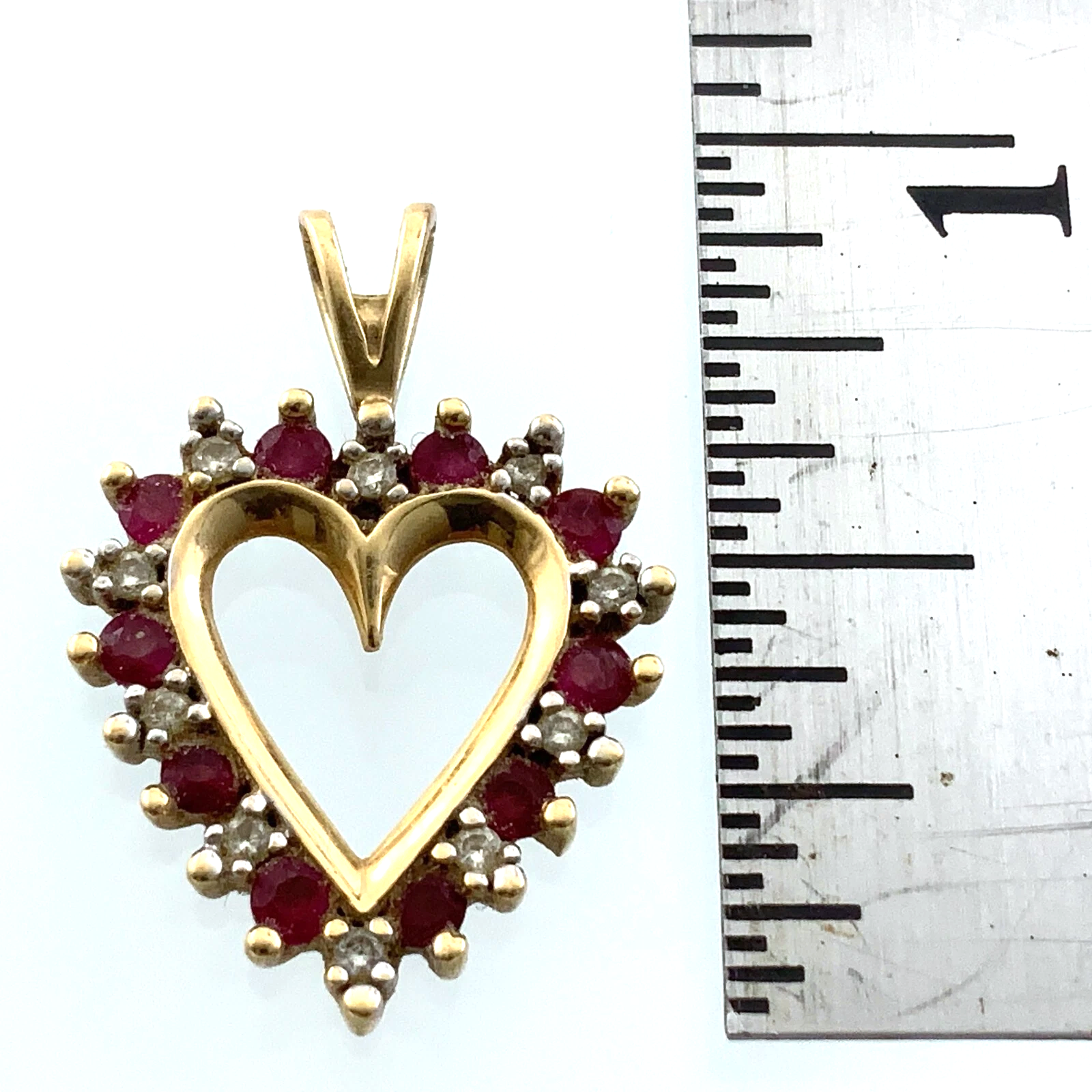 Beautiful 10K Yellow Gold Heart Pendant Ruby Style Stones Charm AU052