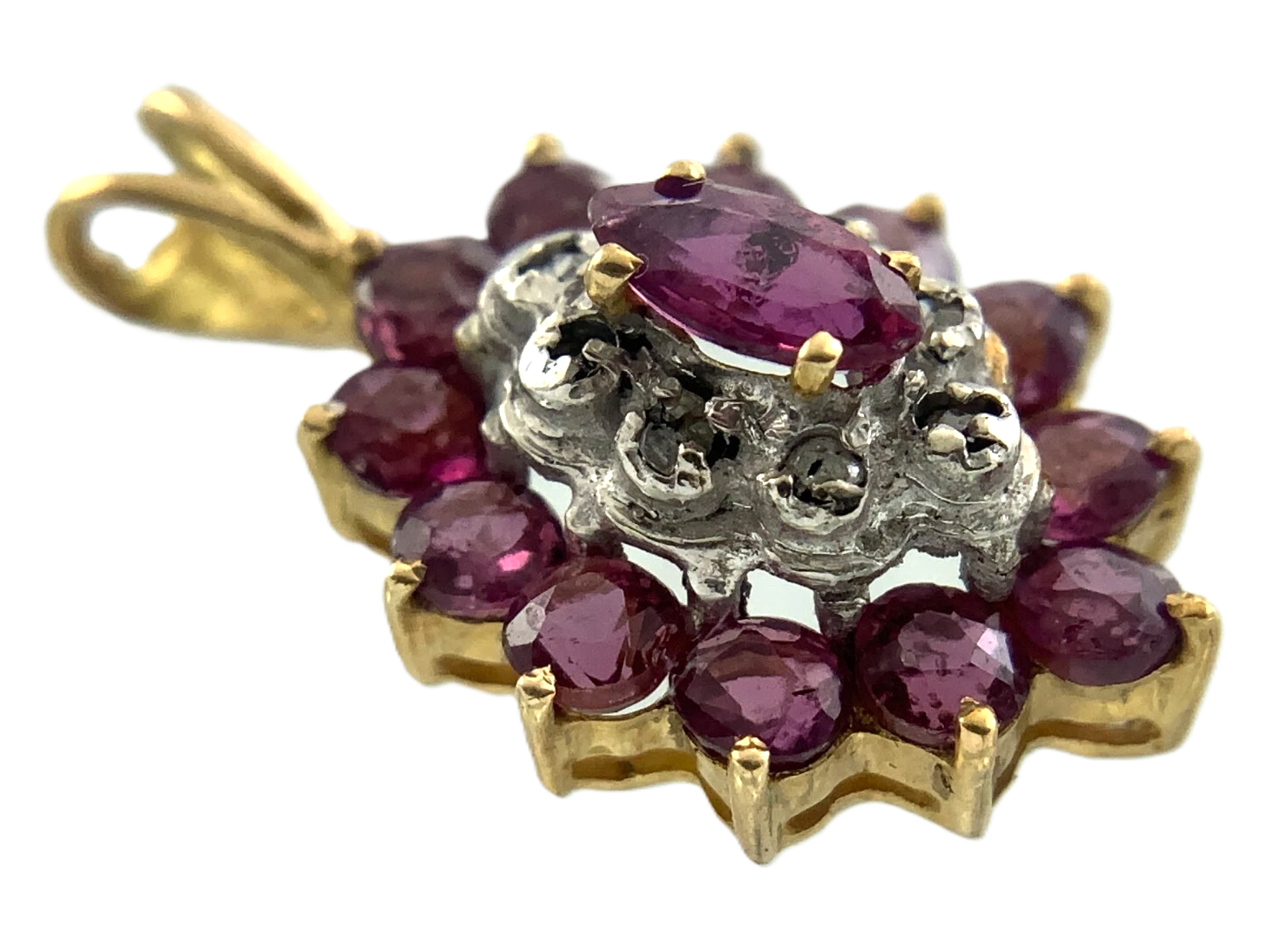 Beautiful Cluster 10K Yellow Gold Pendant Pink Stone Charm AU113