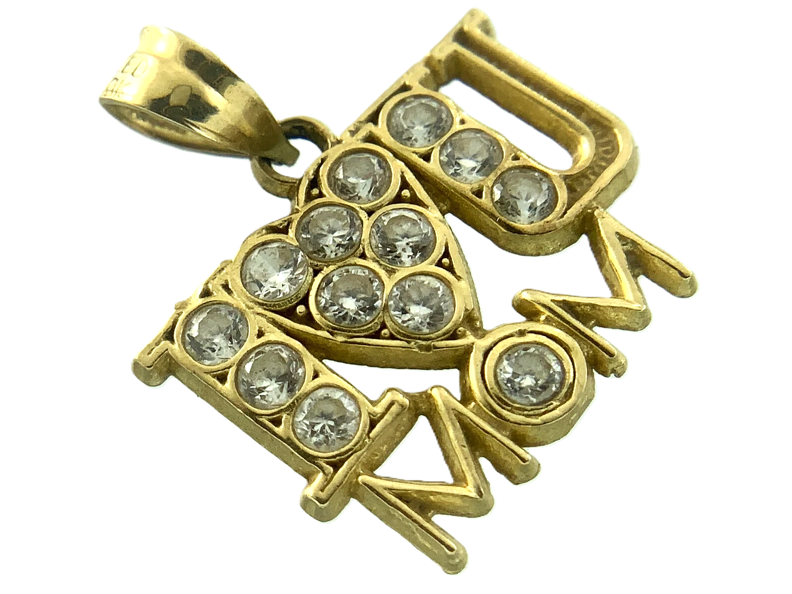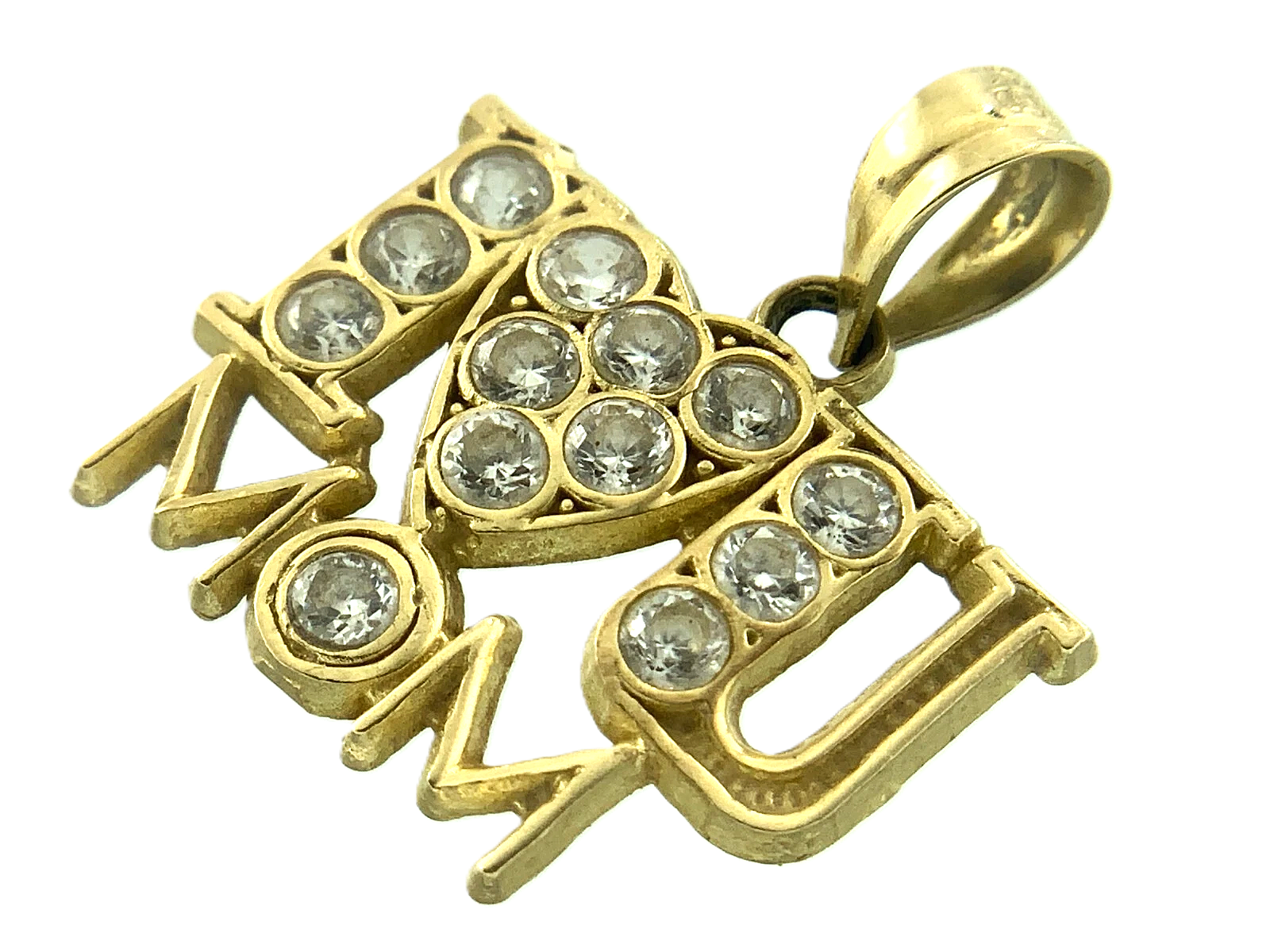 I Heart U Mom Beautiful Gift Love Mom 10K Yellow Gold Pendant Charm AU025