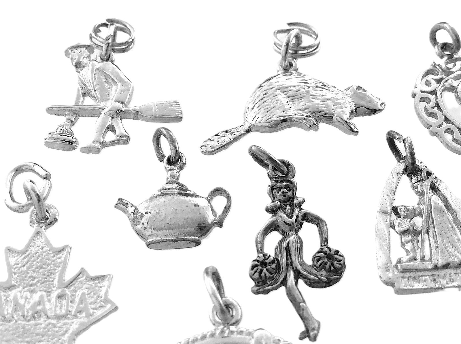 The charms in the image include: