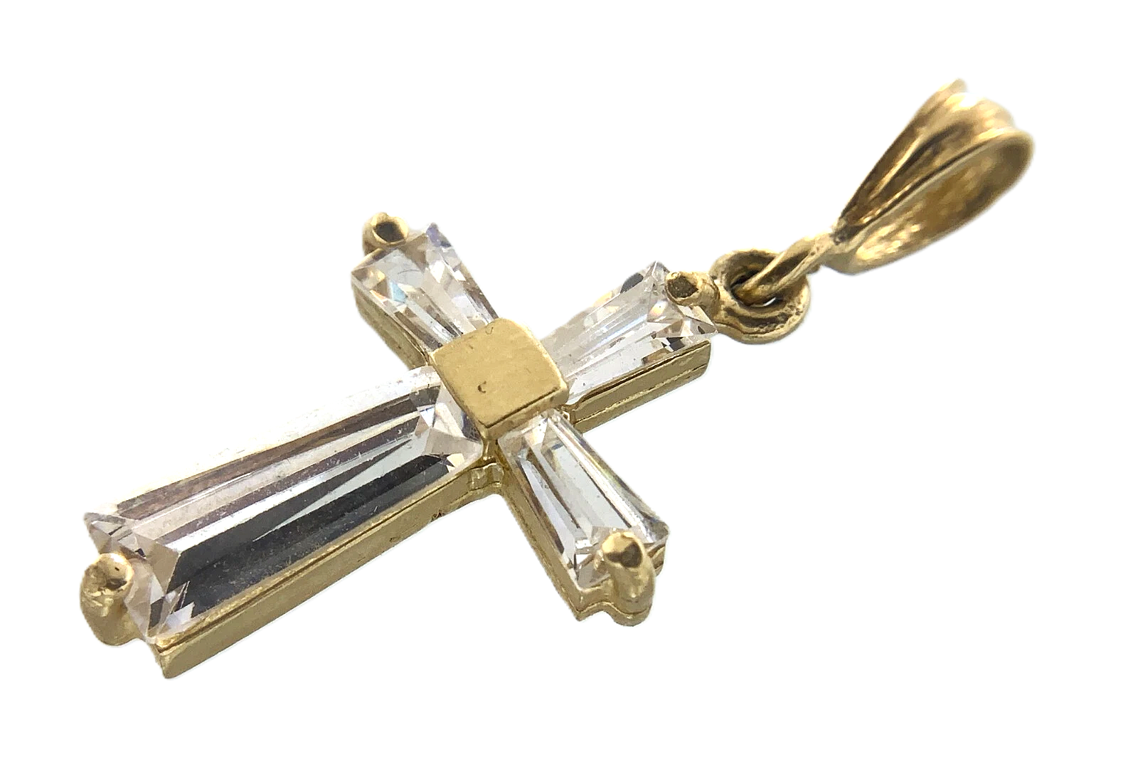 Lovely Cross Pendant 10K Gold Delicate Religious Charm Cubic Zirconia AU007
