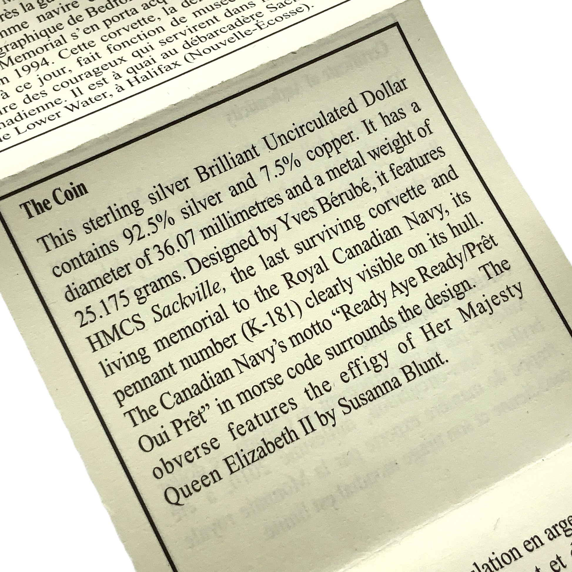The coin features an image of the HMCS Sackville, the last surviving corvette from World War II, which serves as a living memorial to the Navy.