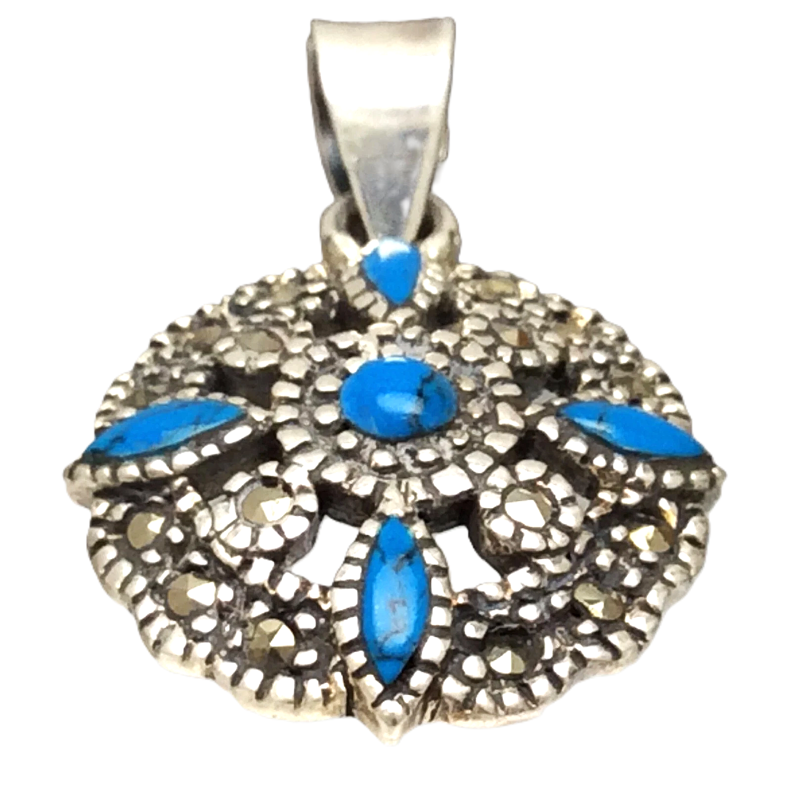 Sterling 925 Silver Marked Turquoise Marcasite Stones 3 Grams Pendant B640