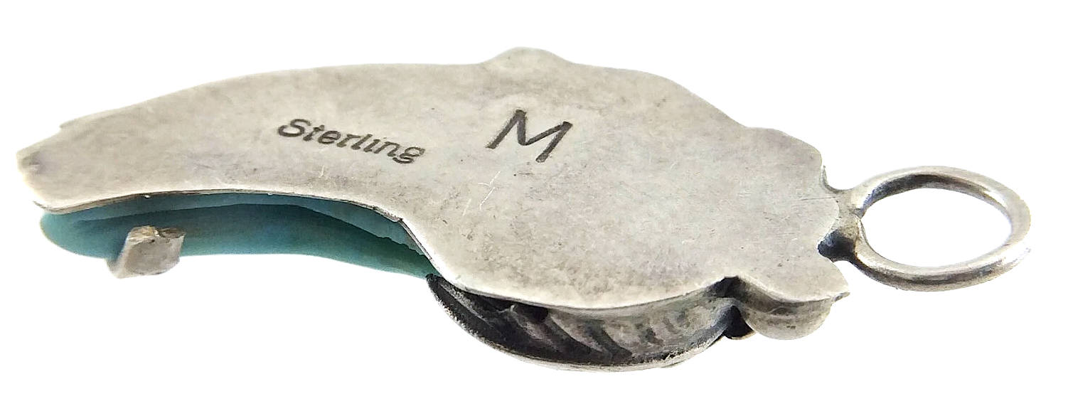 Vintage Unisex Turquoise Stone Sterling Silver Tribal Jewelry Pendant N478